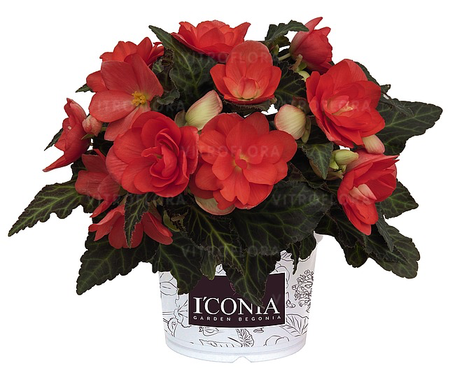 Begonia Iconia to wyjątkowo dekoracyjna odmiana o dużych, intensywnie wybarwionych kwiatach i lekko przewieszającym pokroju. Kwitnie bardzo obficie od wiosny aż do jesieni, tworząc efektowną ozdobę balkonów i tarasów. Doskonale sprawdza się w donicach, skrzynkach balkonowych oraz wiszących pojemnikach. Jest łatwa w uprawie i najlepiej rośnie w półcieniu lub lekkim cieniu.