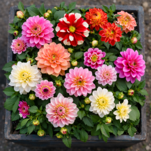 Dalie karłowe w doniczkach to efektowne rośliny ozdobne, które zachwycają intensywnymi kolorami kwiatów oraz długim okresem kwitnienia. Dzięki zwartemu, niskiemu pokrojowi doskonale nadają się do uprawy w donicach, skrzynkach balkonowych oraz na rabatach ogrodowych.