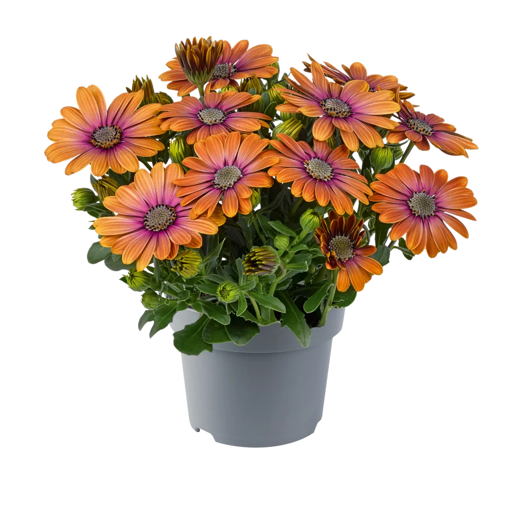 Stokrotka afrykańska (Osteospermum) to wyjątkowo efektowna roślina balkonowa i rabatowa, która zachwyca dużymi, kolorowymi kwiatami przypominającymi stokrotki. Kwitnie bardzo obficie od wiosny aż do jesieni, tworząc gęste, dekoracyjne kępy idealne do donic, skrzynek balkonowych oraz ogrodu.